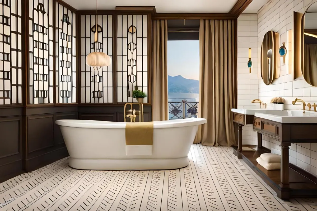 Create Japanese-inspired bathrooms with traditional elements like ofuro soaking tubs, minimalist design, and natural materials for a serene and calming atmosphere.